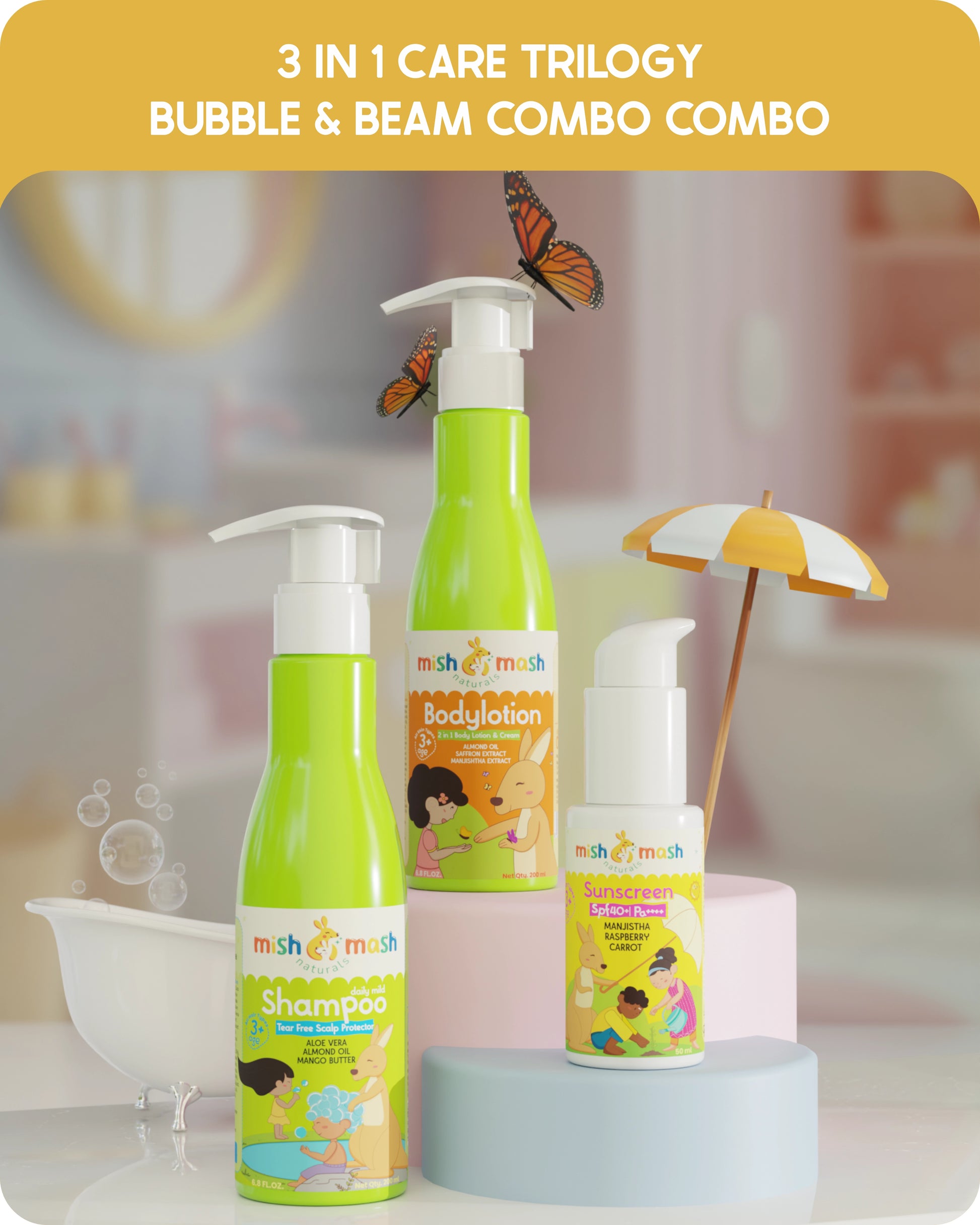 Our products are specially made for kids aged 3 years and above. They're gentle, safe, and even work well on sensitive skin. If your child is just turning 3, we recommend doing a simple patch test — apply a small amount on the inside of their elbow and wait for a few hours to make sure there's no reaction. Better safe, always happy!