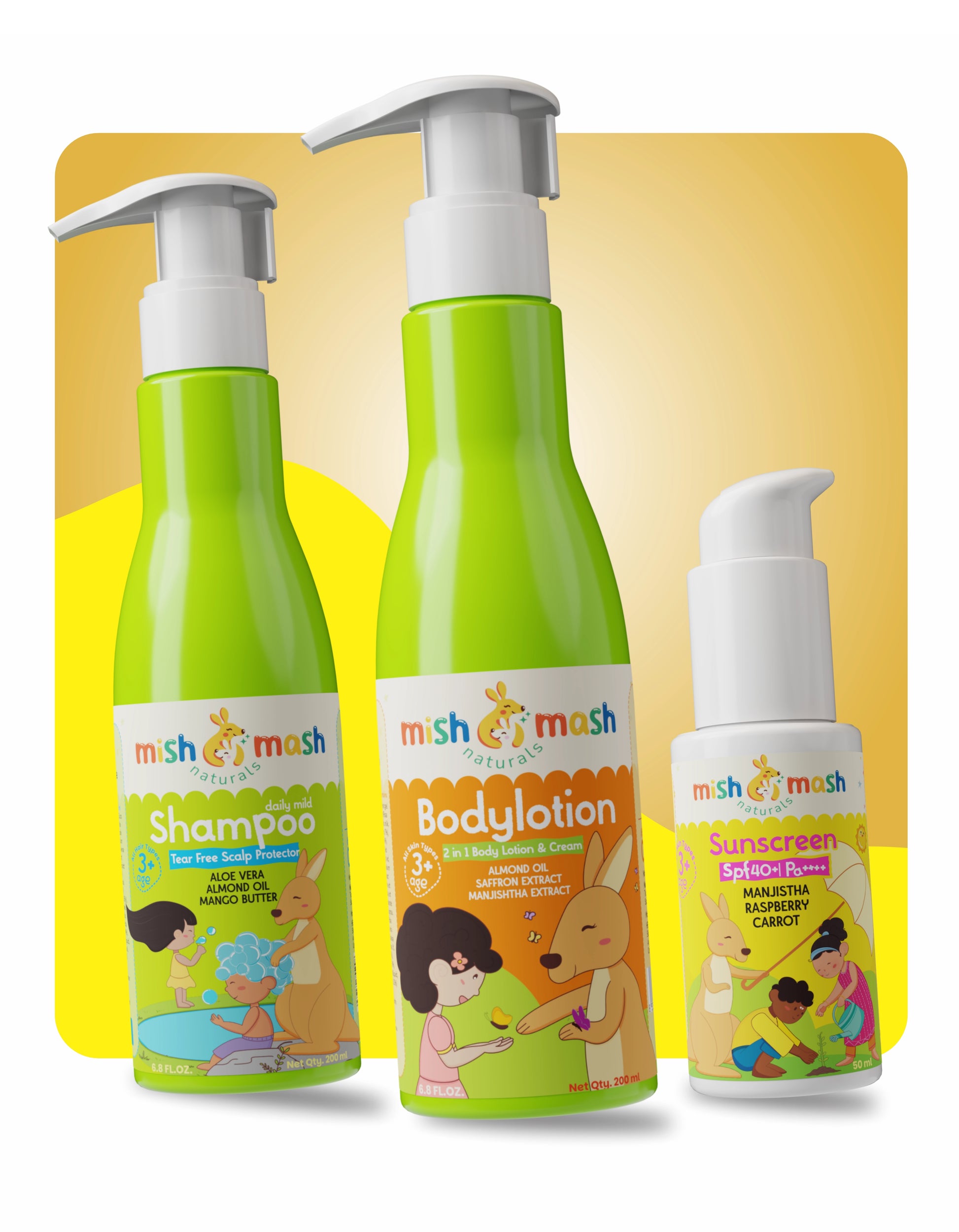 Yes, definitely! Our products are derma-tested and designed to be gentle on even the most sensitive skin. We’ve also added nourishing ingredients like Vitamin E and Vitamin A to keep your child’s skin soft and healthy. Still, a patch test is always a good idea.