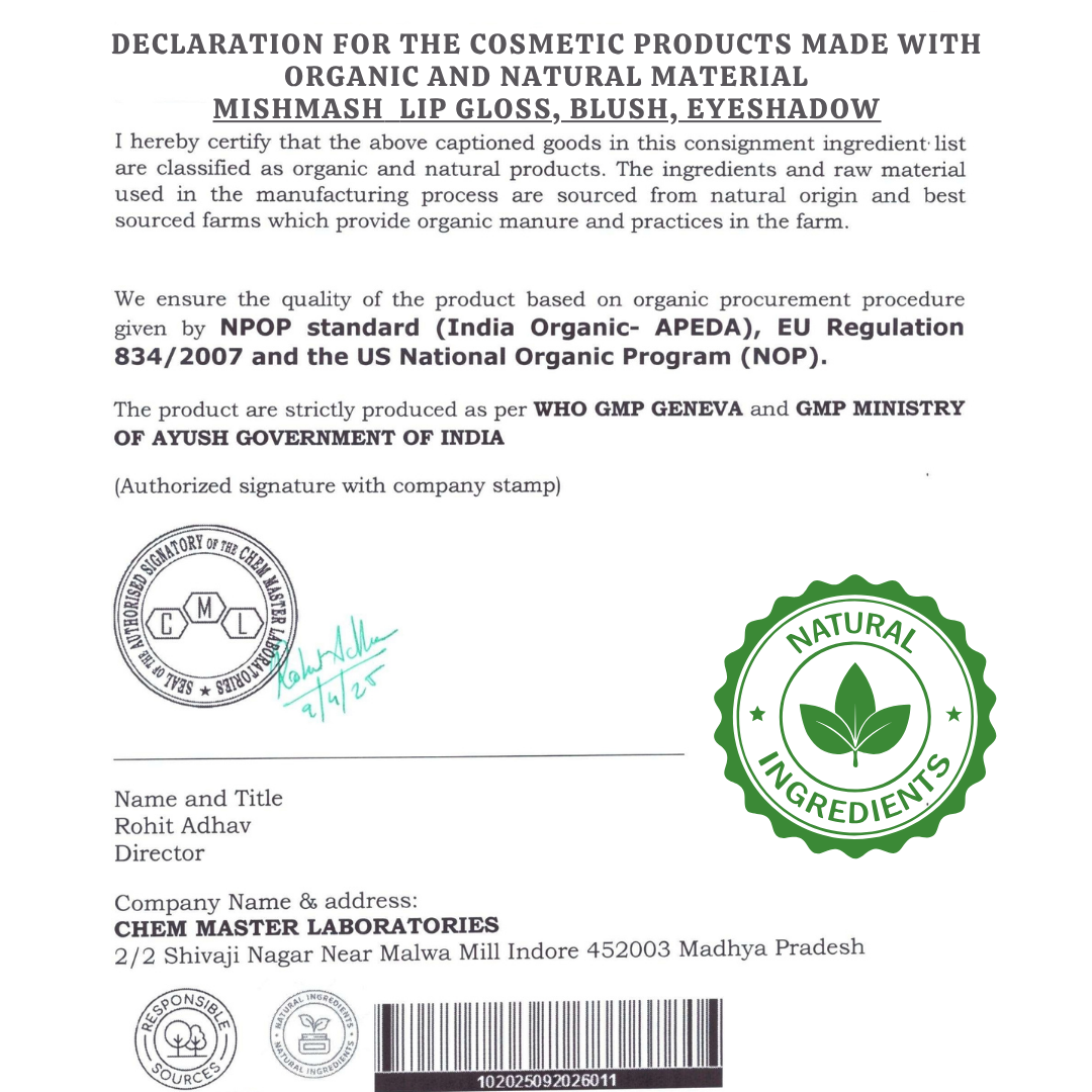 Marketer: Mishmash Naturals Technologies Pvt Ltd, 39/549/2, Sadar Bazar, Raipur, Chhattisgarh 492001